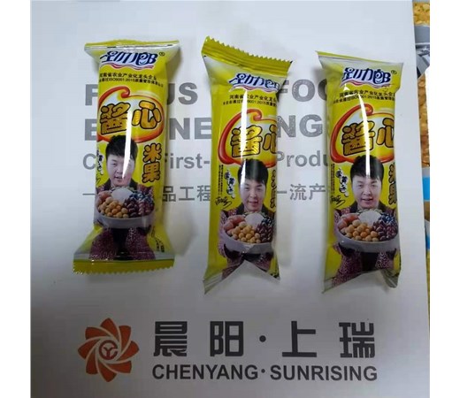 夾心米果生產(chǎn)設(shè)備 臺(tái)灣米餅機(jī)器生產(chǎn)線 外表用擠壓膨化的工藝做出空管,不論是圓形管狀還是方形管狀,外表膨化成型,空心部分用其他的芯料填注,然后切斷成型,外表的擠…