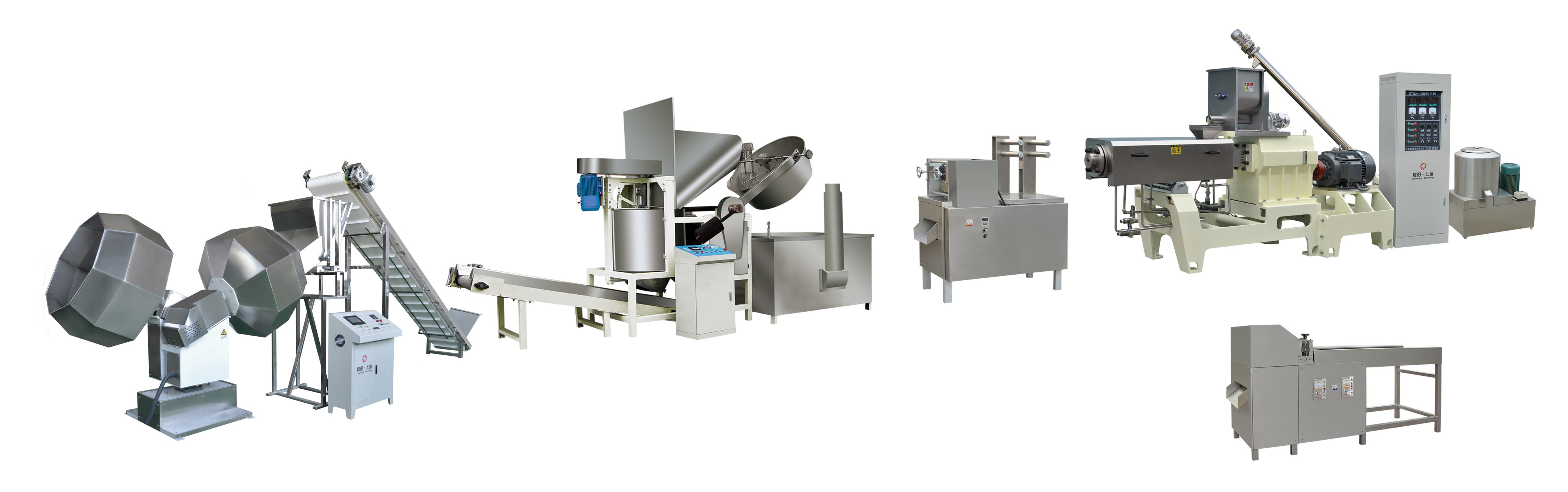 拌粉機-膨化機-切斷機-提升機-油炸機-自動調味線-冷卻線-包裝機