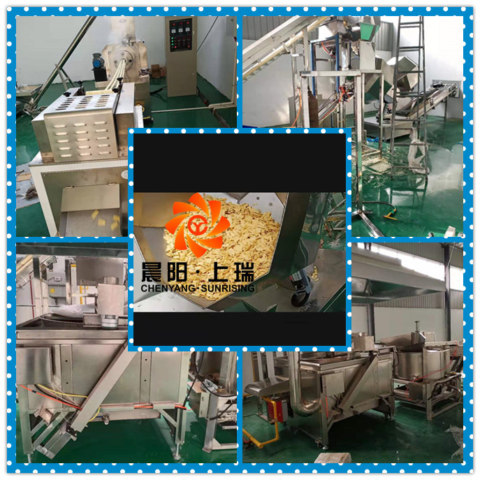 小米鍋巴生產(chǎn)線工藝可將小玉米粉、面粉、大米粉、淀粉、糖、水均勻攪拌經(jīng)過雙螺桿膨化機直接擠壓成型,設備操作簡單、易學易懂,一人操作即可。鍋巴有口感酥脆、油而不膩、食后留有余香、促進腸道消化之特點,是廣大消費者茶余飯后的休閑食品。