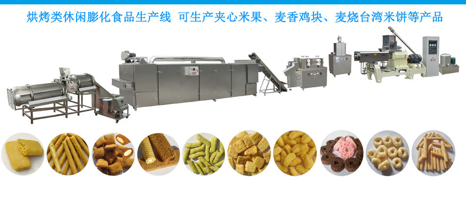 該生產(chǎn)線經(jīng)多次升級改造,使生產(chǎn)線自動(dòng)化程度更高、運(yùn)行平穩(wěn)、操作簡單,設(shè)備配置也可根據(jù)客戶需求定制,不僅原料范圍廣,生產(chǎn)產(chǎn)品更為廣泛,能生產(chǎn)當(dāng)下市場流行的麥香雞塊、膨化夾心食品、麥燒、醬油餅等產(chǎn)品。