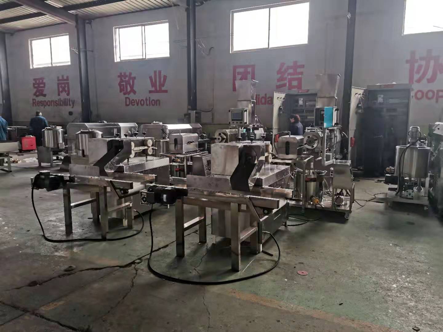 4、注芯機:膨化機生產(chǎn)出空心管的瞬間講芯料瞬間注入,可注入花生醬、巧克力醬、糖稀等。