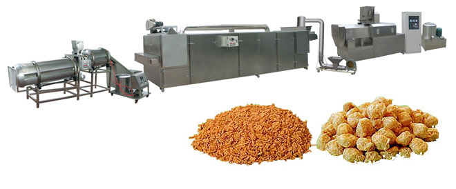 (3)拆絲:將脫水后的拉絲蛋白打散拆絲。把復(fù)水脫水后的拉絲蛋白置于快速打漿機(jī)中(鈍刀,轉(zhuǎn)速約500~1000rpm),打漿約2~3分鐘即可。也可用轉(zhuǎn)速達(dá)300rpm以上的擂潰機(jī)、攪拌機(jī)拆絲?;蛘邔匕铏C(jī)反轉(zhuǎn)(刀背)運(yùn)行1分鐘左右(切刀速度約500~1000rpm)?!±z蛋白產(chǎn)品具有極佳的結(jié)構(gòu)和真實(shí)肉質(zhì)纖維的組織,非常適合用于各類高級(jí)素食仿肉食品的加工,如素火腿、素雞、素魚(yú)、素漢堡、素?zé)峁?、素茶鵝、素牛排、素肉松等。產(chǎn)品本身亦具有良好的吸水性、保油性,經(jīng)過(guò)適當(dāng)?shù)募庸ぜ夹g(shù)后,是一種理想的高蛋白肉制品添加物,在肉制品應(yīng)用中,可達(dá)到增強(qiáng)肉感,降低成本,提高產(chǎn)品中的蛋白質(zhì)含量的目的。如應(yīng)用于肉糜腸類、西式火腿、肉丸類、重組排類(雞排、豬排等)、油炸雞塊、漢堡肉類餃子、包子、肉粽等速凍肉制品中;用于諸如仿肉牛肉干,重組牛肉粒,葷素肉松等休閑食品也是絕佳的選擇。拉絲蛋白產(chǎn)品復(fù)水即可調(diào)理制作菜肴或代替部分肉品使用,因此可直接供食堂、配餐公司、餐廳等選購(gòu)。本品不僅操作方便,也倡導(dǎo)了健康營(yíng)養(yǎng)的飲食新概念,同時(shí)可達(dá)到降低成本的效果(不到瘦肉成本的1/2),為一新潮流趨勢(shì)的食材選擇。