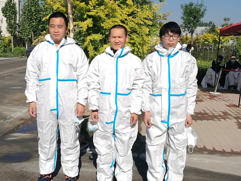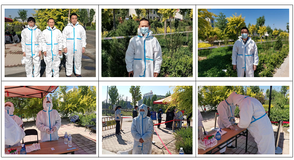 戰(zhàn)疫展勞模本色,艱難顯志愿精神。在勞動(dòng)節(jié)期間, 晨陽(yáng)公司3名員工參與工業(yè)園區(qū)的志愿者防疫工作,集合進(jìn)行崗前培訓(xùn)。醫(yī)務(wù)工作者向大家講述了信息采集平臺(tái)的使用、防護(hù)的穿脫等基本操作和注意事項(xiàng),大家著裝完畢后就奔向各自的工作崗位,開(kāi)始了緊張有序的工作。正午時(shí)分,艷陽(yáng)高照,身著防護(hù)服的教職工志愿者們口干舌燥,衣衫也早已被汗水打濕,但是他們依然毫無(wú)怨言地堅(jiān)守著崗位,為確保工業(yè)園區(qū)員工有序地開(kāi)展核酸檢測(cè)貢獻(xiàn)著自己的力量。