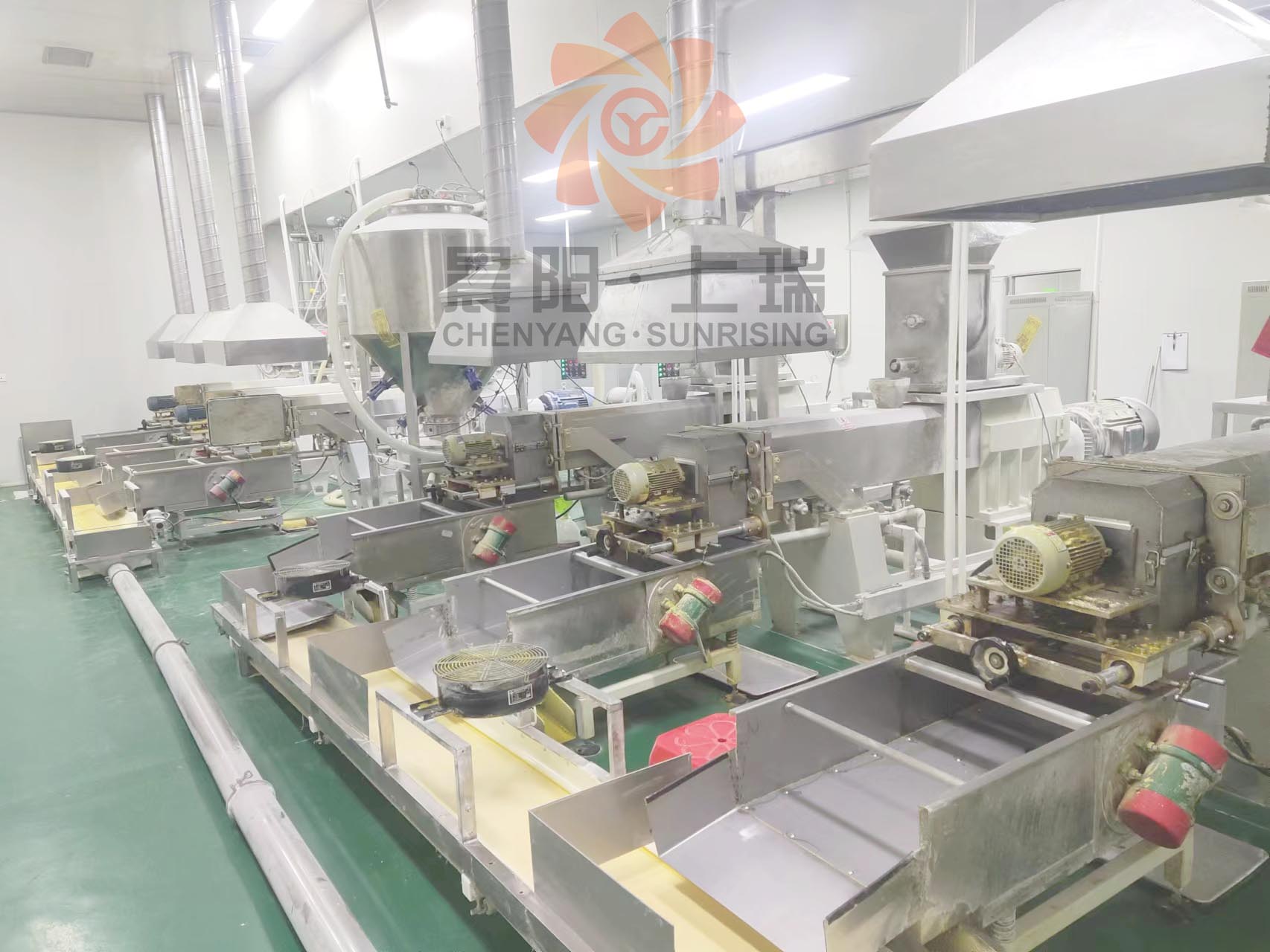 客戶因早餐營養(yǎng)粉(沖調(diào)類營養(yǎng)粉)市場需求不斷增加,產(chǎn)能需求日益旺盛增加,與晨陽分多次訂購營養(yǎng)粉加工膨化設(shè)備,為保證產(chǎn)品的高質(zhì)量生產(chǎn),客戶生產(chǎn)車間使用無塵凈化車間。采用濟南晨陽自主研發(fā)的新型62雙螺桿膨化機,本型號的機器單機產(chǎn)能300公斤每小時,本機型運行穩(wěn)定,產(chǎn)品質(zhì)量在同行業(yè)排在前端,客戶用該機型24小時不間斷連續(xù)運行,單機日產(chǎn)能7.2噸。該機型在客戶工廠經(jīng)住考驗,得到客戶的充分肯定。在日產(chǎn)7噸的產(chǎn)能下已經(jīng)復制6臺機器,擴產(chǎn)到日產(chǎn)能到45噸,產(chǎn)能和質(zhì)量的穩(wěn)定在同行業(yè)已經(jīng)達到頂端。客戶根據(jù)市場需求,已經(jīng)在研產(chǎn)新的生產(chǎn)線,規(guī)劃未來,未雨綢繆!感謝客戶的信任,我們將一如既往的用熱情的服務和更高的質(zhì)量回饋客戶嗎,合作共贏,同謀發(fā)展!