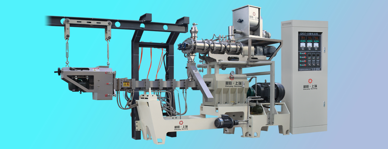 雙螺桿膨化機(jī)由供料系統(tǒng)、擠壓系統(tǒng)、旋切系統(tǒng)、加熱系統(tǒng)、冷卻系統(tǒng)、傳動系統(tǒng)、控制系統(tǒng)組成。該機(jī)適用原料廣泛、生產(chǎn)產(chǎn)品多樣,變頻調(diào)速、自動化程度高、運(yùn)行平穩(wěn)、使用壽命長。
